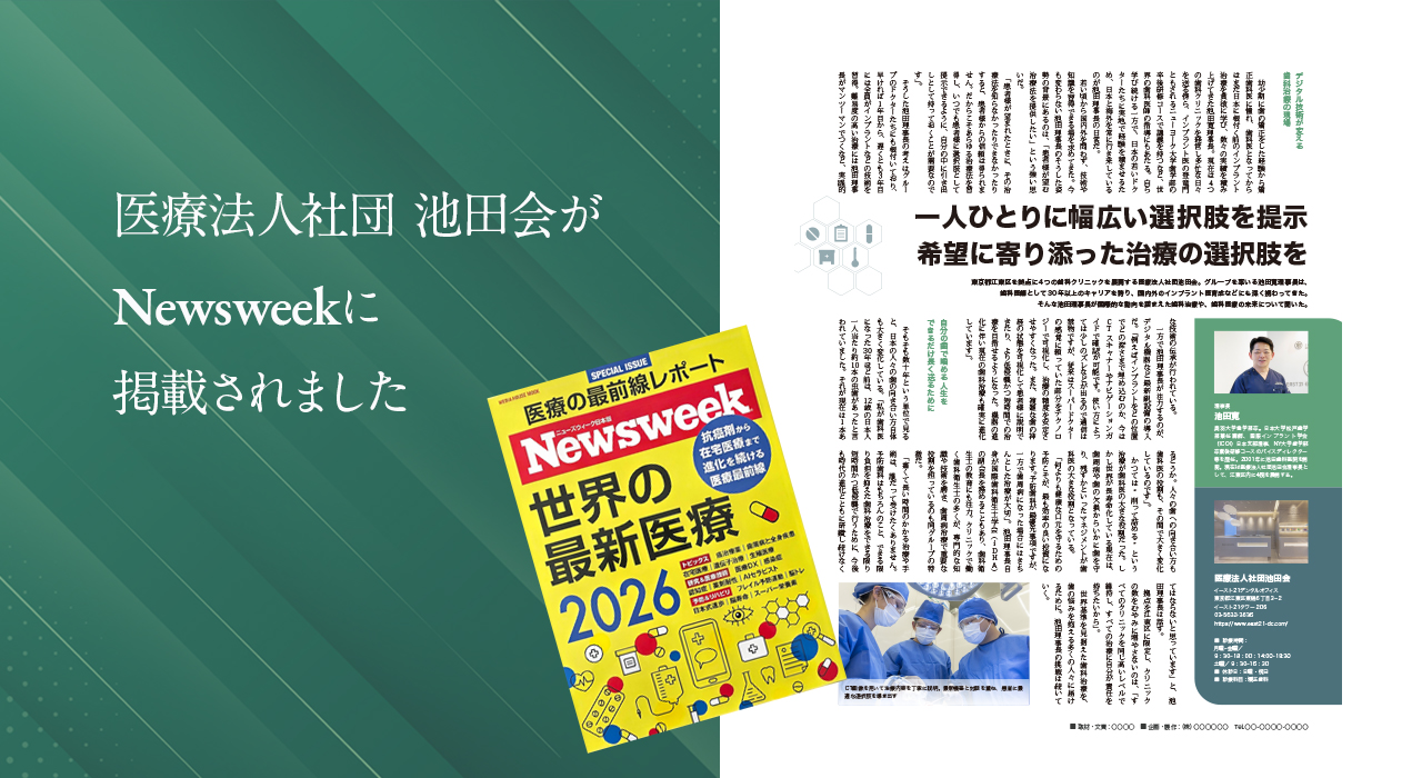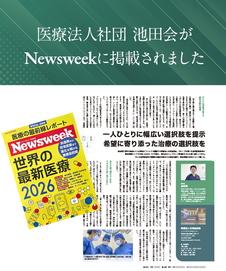 当院は江東区に4医院、歯科医師11名在籍の医療法人社団池田会が運営する歯科医院です。