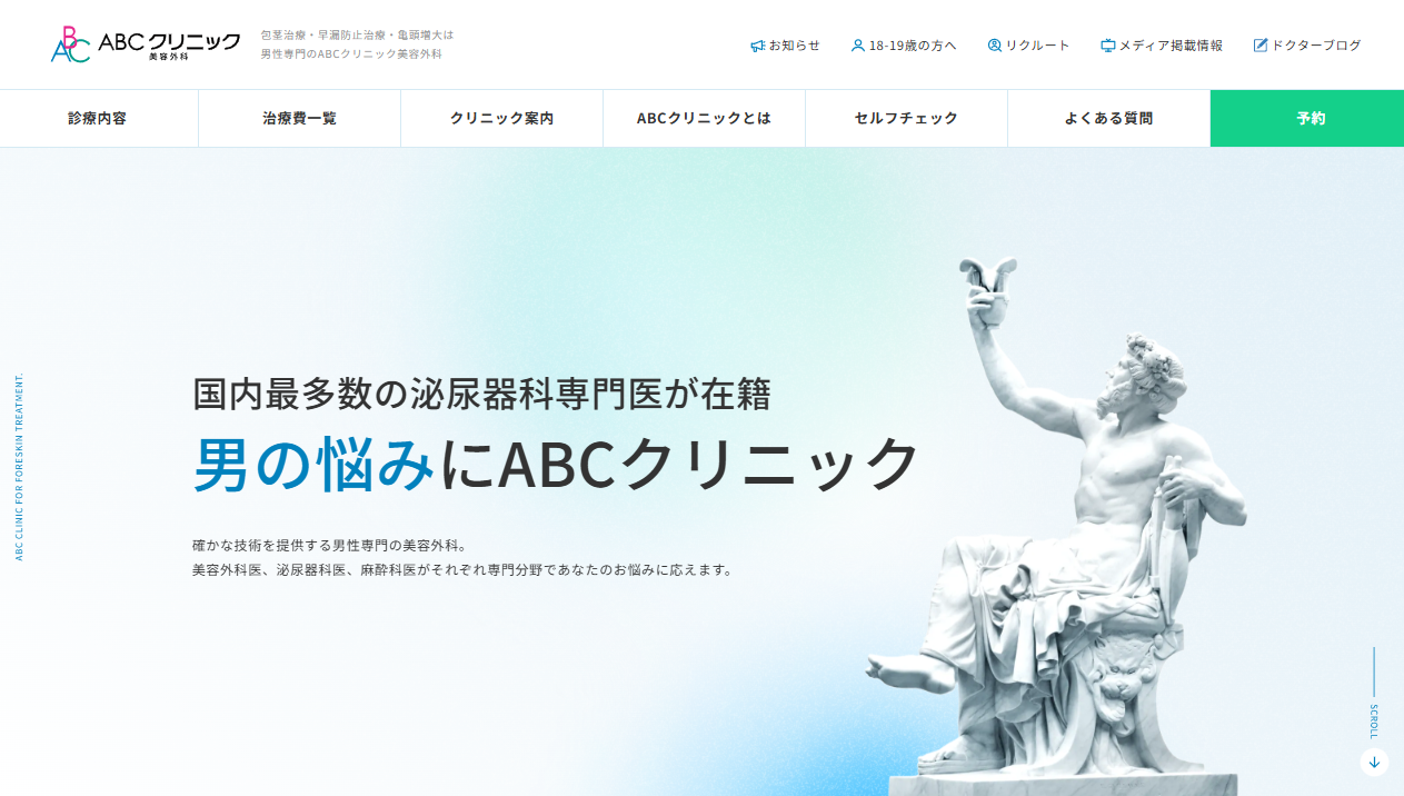 ABCクリニックは、男性特有の悩みに特化したクリニックで、全国に26院を展開しています。これまでに多数の症例を扱っており、経験豊富なドクターによる安定した技術力にも定評があります。