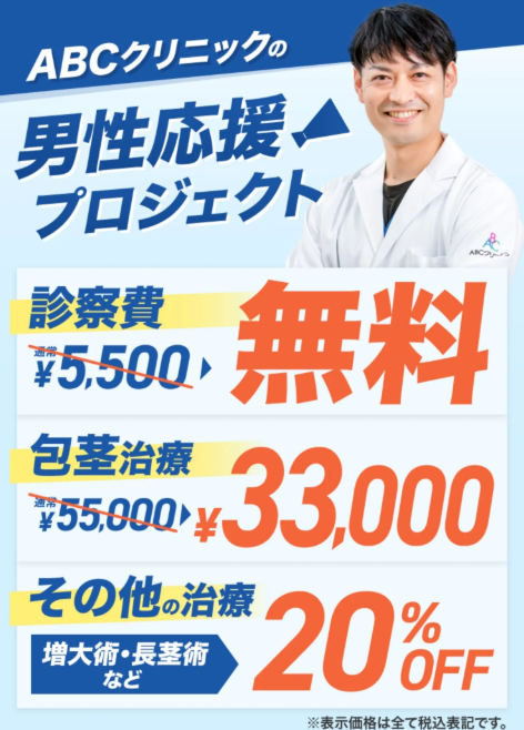55,000円(税込)の包茎手術を、33,000円(税込)で受けることができます。