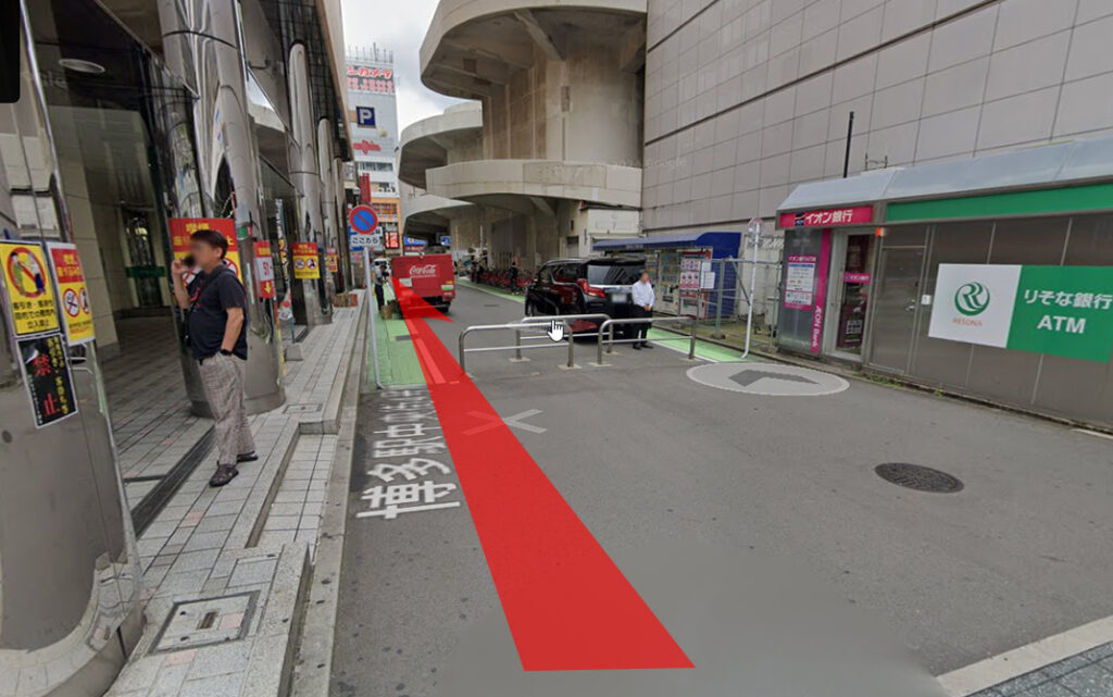 ②各種銀行ATMを右手に直進します。