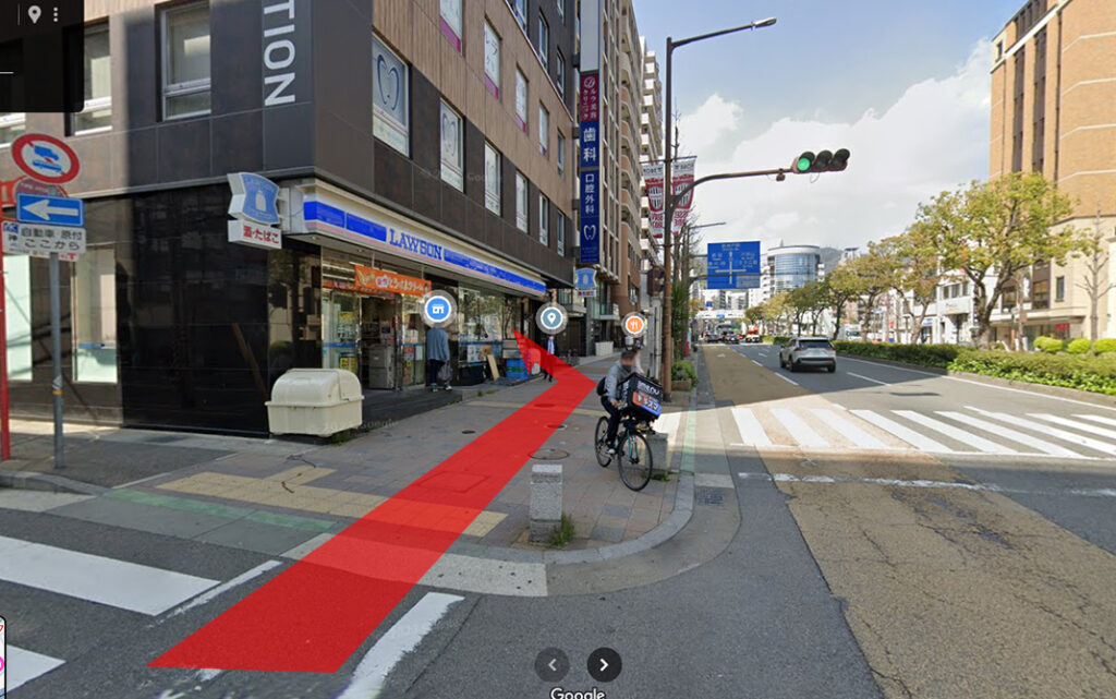 ②左手にローソンがありますので、そのビルの4階がABCクリニック神戸院です。
