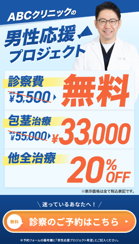 ABCクリニックで特に人気のある割引が「男性応援プロジェクト」です。
