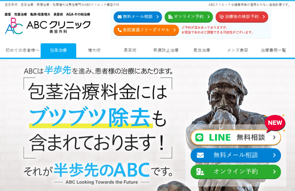 ABCクリニックは、包茎手術や長茎術、亀頭増大といった男性特有の悩みに幅広く対応している全国展開のクリニックです。