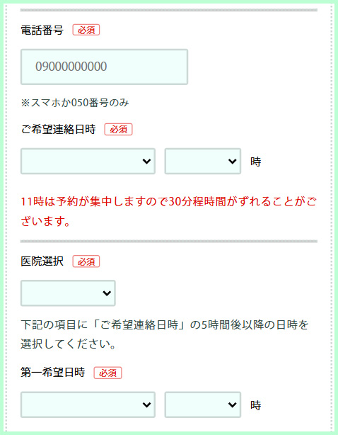 人気クリニックのため電話が繋がらないこともあり、WEBからの予約がおすすめです。