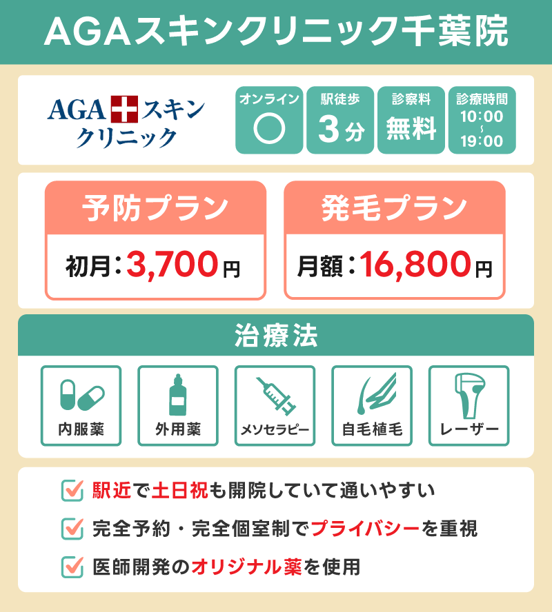 | 公式HP | https://agahairclinic.or.jp/clinic/chiba/ |
