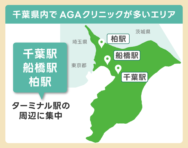 - 千葉県内でAGAクリニックが多いエリアは?